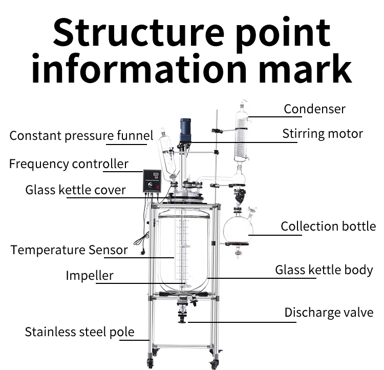 Jacketed glass reactor is mainly applied in Bio-chemical, Pharmaceutical & Fine-Chemical Trades. It can be jointed with vacuum pump, chilling circulator , heating circulator is widely used in the process like Combination, Reaction, Separation,Concentration, etc It is adopted in the industry of chemical products, advanced material synthesis experiment, etc.