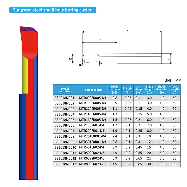 | Type: | Small hole boring tool; | Tip arc: | R0.05-R0.2mm; |