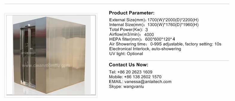 Clean Room Air Shower protects cleanroom environment from contamination. It can enhance cleanroom performance by removing surface contamination from clothing and garments of person.