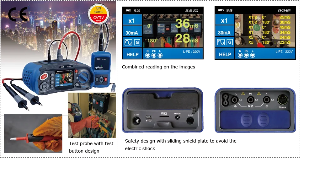 DT-6650 rugged Multifunction Installation Tester with 3.5" TFT color LCD display, provides insulation resistance, earth resistance, loop impedance, voltage, RCD, PFG and PSC testing. It is designed with software system and ensure the safety of electrical installations in domestic, commercial and industrial applications. 6650 series can ensure the fixed wiring is safe and correctly installed. It's fast sampling and dual display, clear symbols and exceptionally wide viewing angle are for easy and safe readings.
