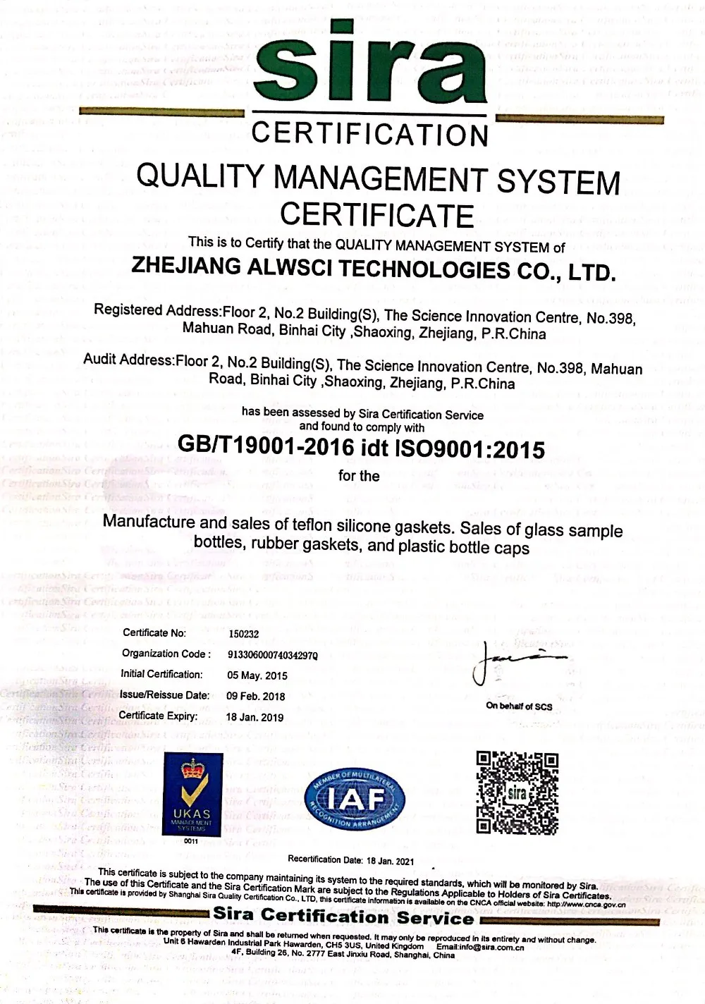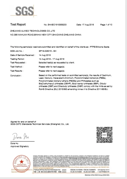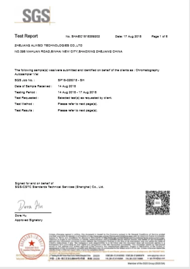 We have third-party quality certificate, including SGS and SIRA for our vial, cap and septa.