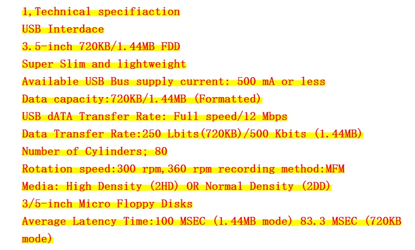 | Product name: | USB External Floppy Disk Drive; | Interface Type: | usb; |