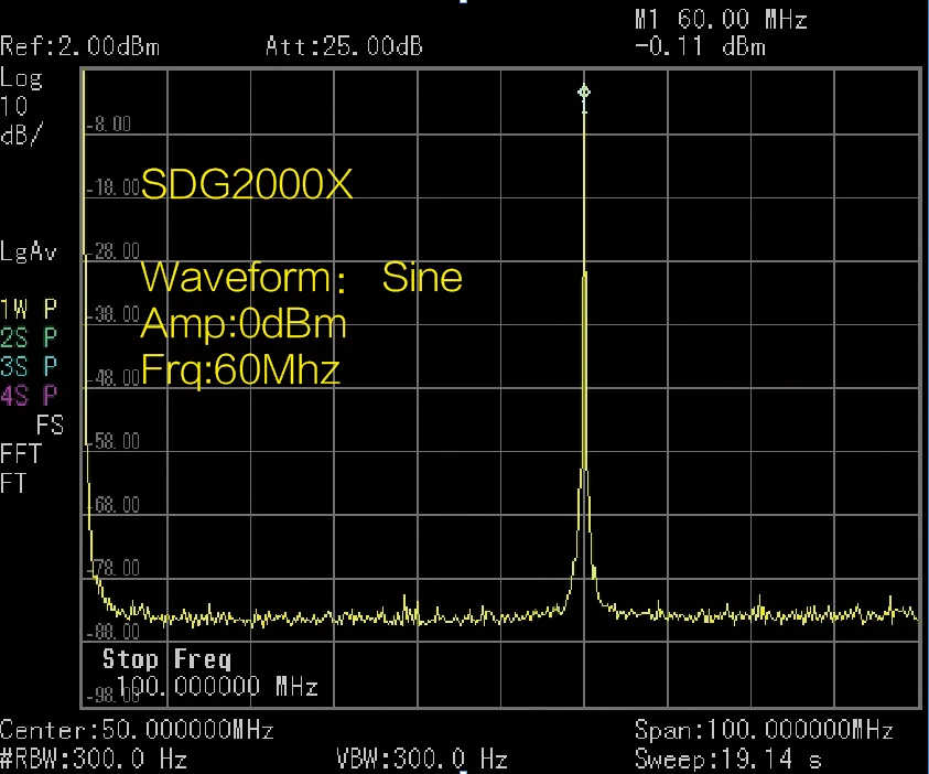 High fidelity sine output. Almost no spurious observed @60MHz, 0dBm.