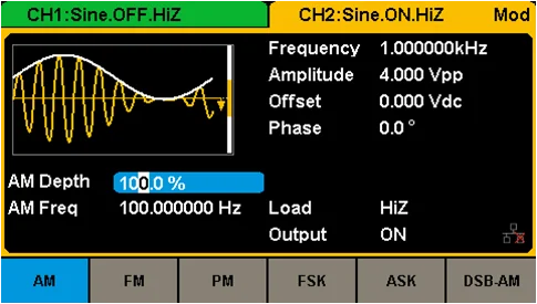 | Support for AM, FM, PM, FSK, ASK, DSB - AM provide for a variety of analog and digital modulation mode, "internal" and "external" modulation. |