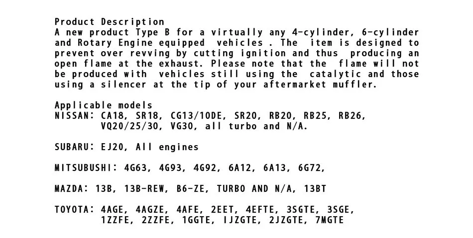 | Car Make: | Toyota,universal; | type: | Exhaust Ignition Rev Limiter; |