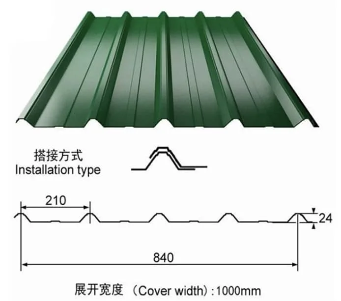 | Tile Type: | galvanized steel or PPGI; | Coil width before rolling: | 900mm, 915mm, 1000mm, 1200mm, 1250mm; |