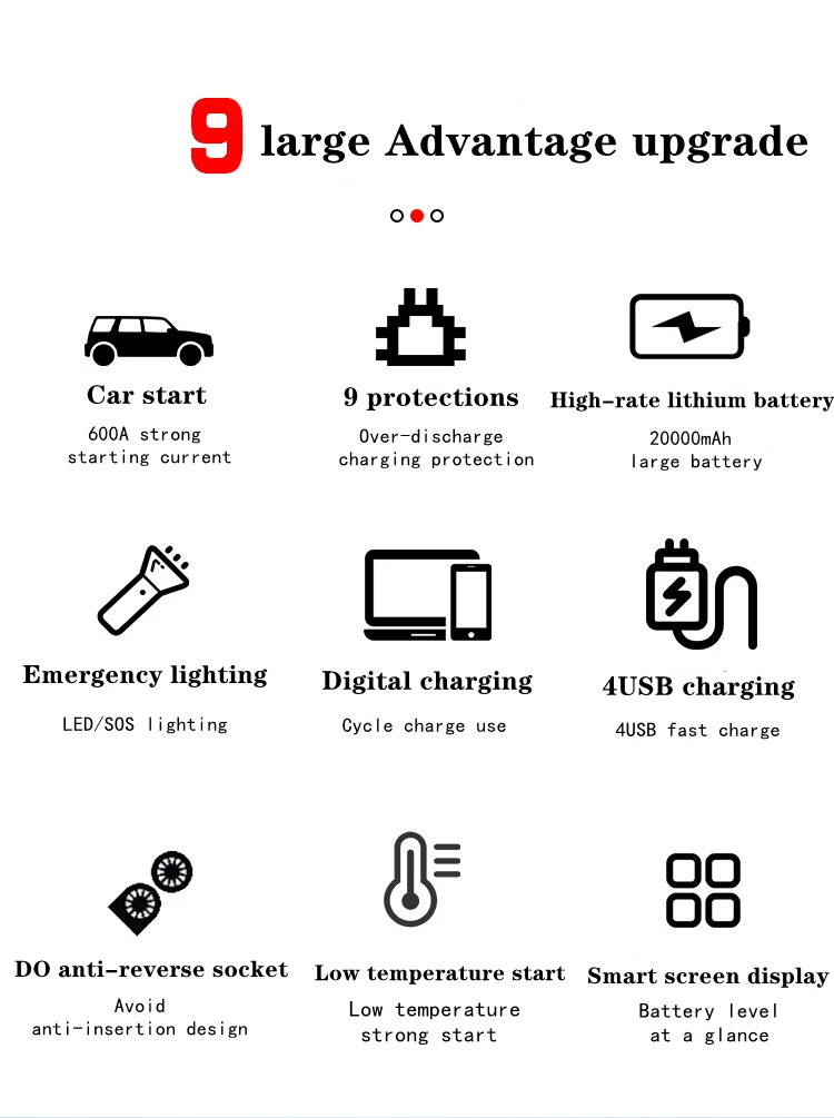 | Keyword: | Car Jump Starter; | Capacity: | 20000mAh/99800mAh; |