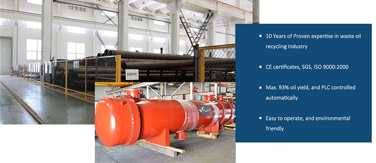 Up to now, we have obtained authoritative patents for membrane distillation technology, oil pyrolysis technology, oil purification technology. We own factory more than 5000 and more than 50 employees.