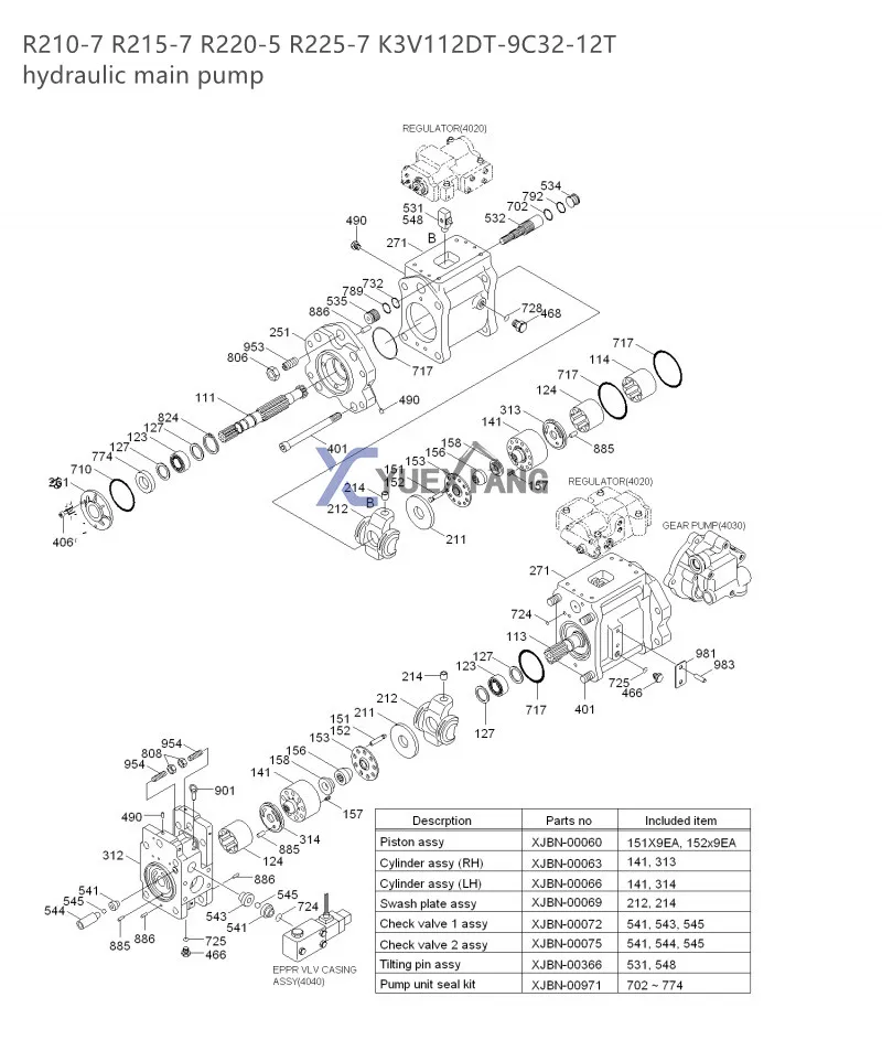 534 | XJBN-00092 | STOPPER(L) | 2 | K | XJBN-00971 | PUMP UNIT SEAL KIT | 1 |