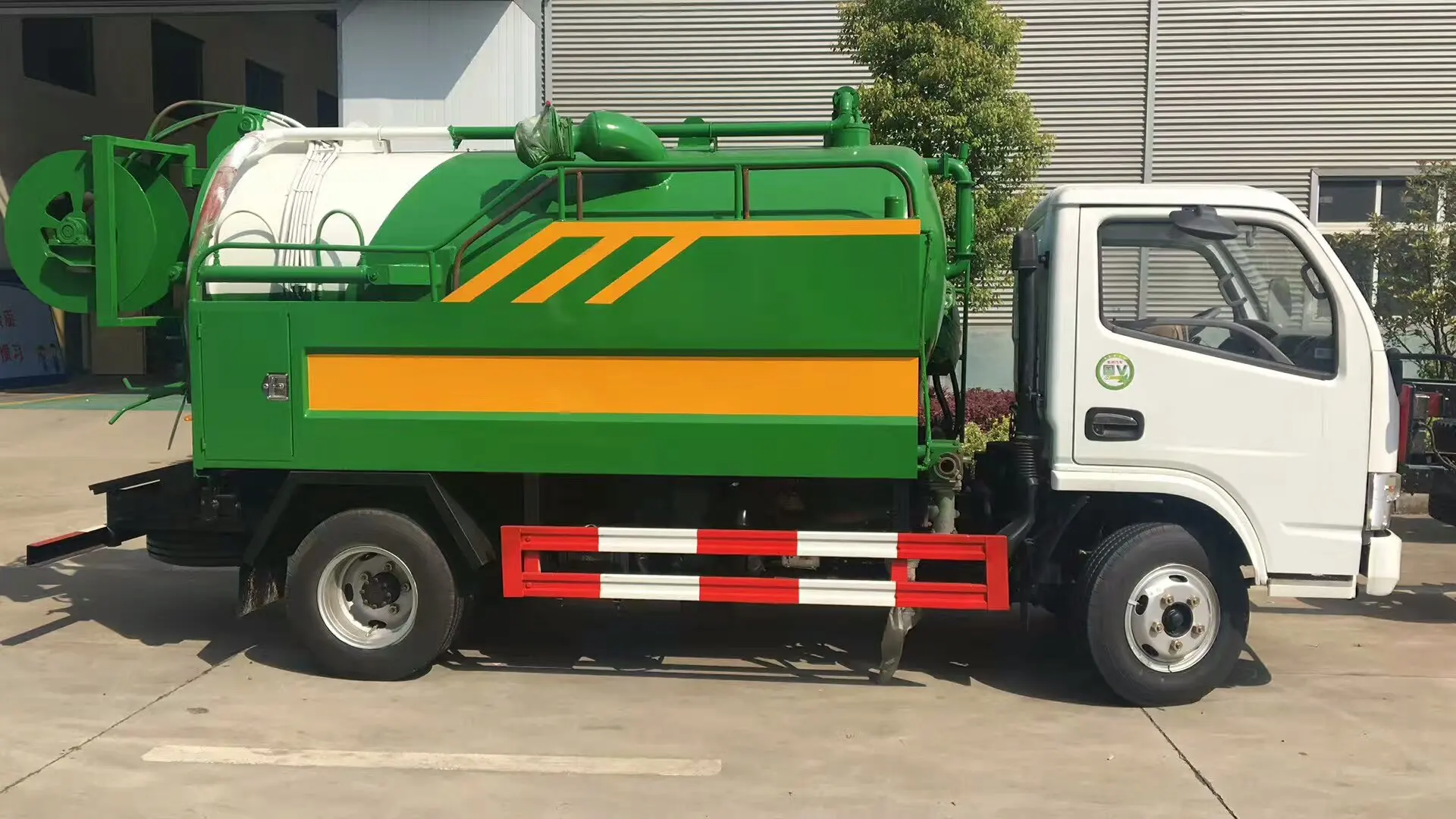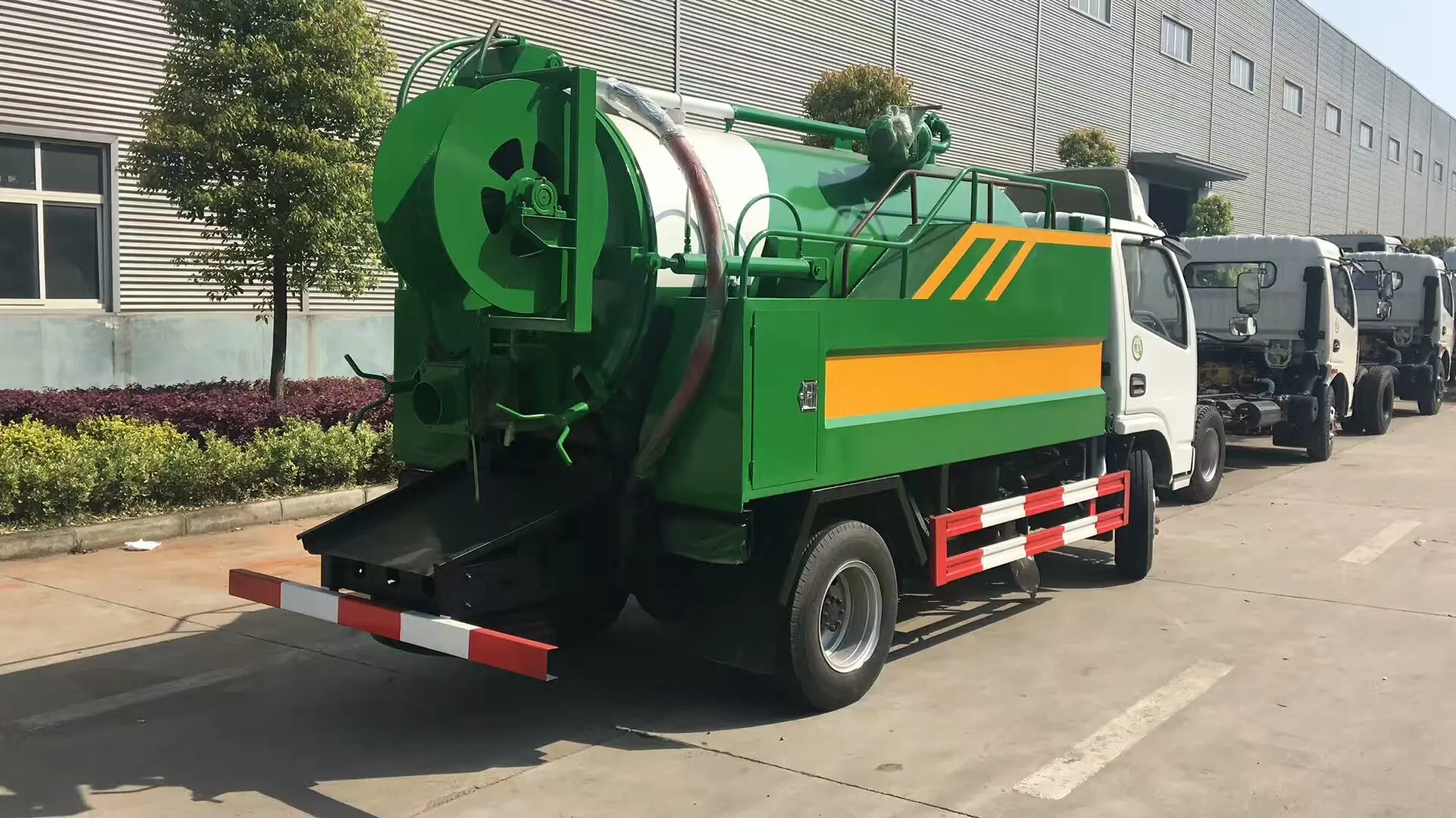 4, Equipment tank with vacuum suction sewage pump and imported plunger high-pressure cleaning pump, PVC laminated steel tube 60 -80 meters, 10 different thrust nozzles cleaning, suitable for different pipe cleaning and dredge