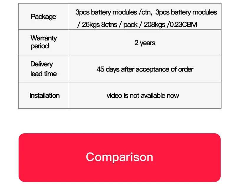 | Brand Name: | YESA; | Weight: | 8kgs (battery module); |
