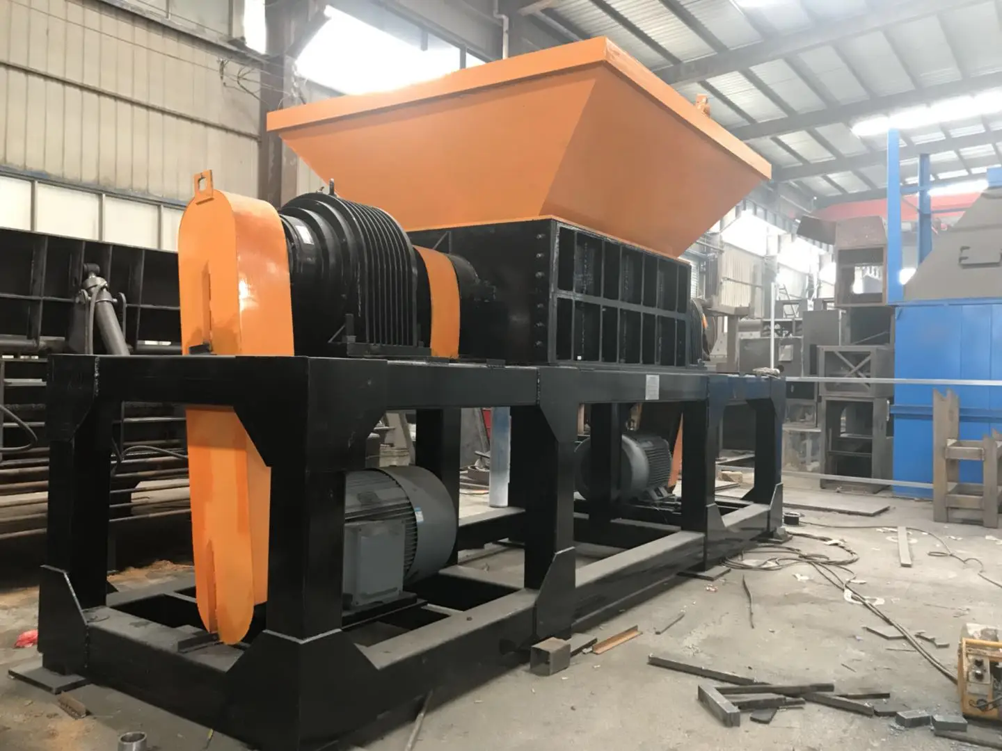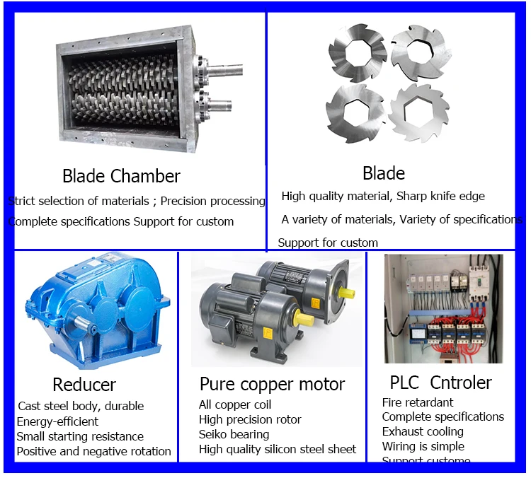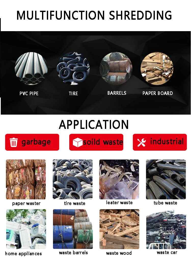 tire shredder waste tyre recycling machine prices is used to crush plastic, rubber, fiber, paper, wood, large hollow materials (large containers such as plastic drums) and various mixed wastes, especially those containing metal, or pre-crushed tools such as sand. scrap. The crushing hollow material can be equipped with a press device to increase the output. A rotating screen can also be added to control the discharge size. When the double shaft shredder is running at low speed, noise and dust can reach high environmental standards.