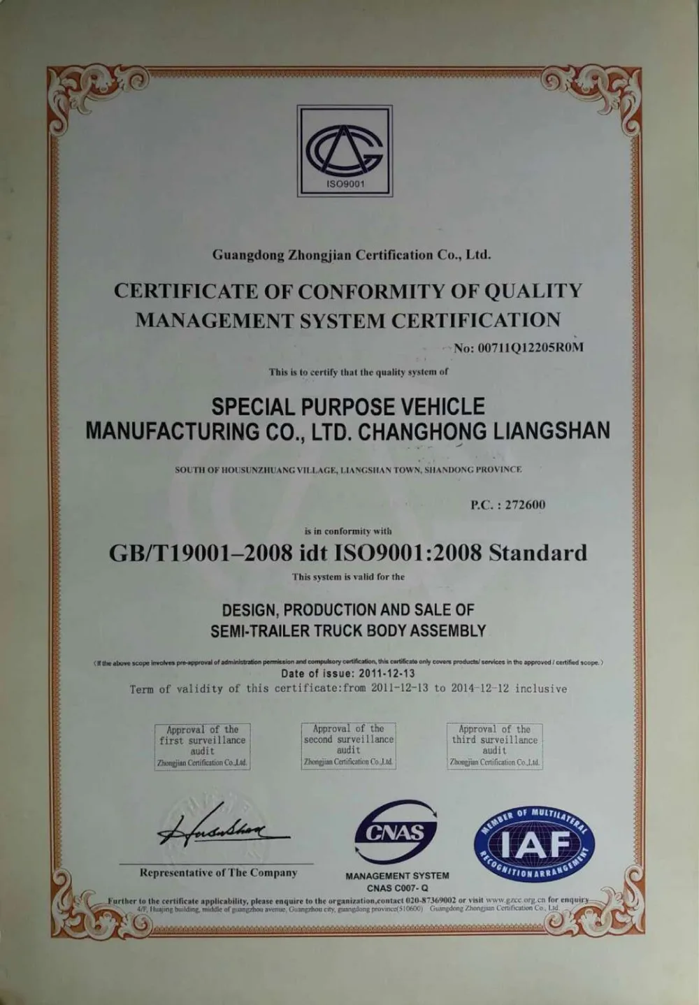 Located in Liangshan County--the largest trailer base in China, Changhong has 20 senior engineers and 800 experienced employees, covering 72968 square meters. Our main products contains semi-trailer, box trailer, lowbed trailer, dumper trailer, tank trailer , and container trailer, vehicle transporter, etc. Customized production is also workable thanks to our R&D Center. Advanced automatic production and testing equipment ensures unmatchable quality in products. High-strength steel from Chinese national steel company and submerged-arc welding technology ensure the trailer suitable for different road conditions with higher load. After years of development, Changhong has obtained high reputation and market share in both China and abroad. In addition, our products had passed I S O 9 0 0 1