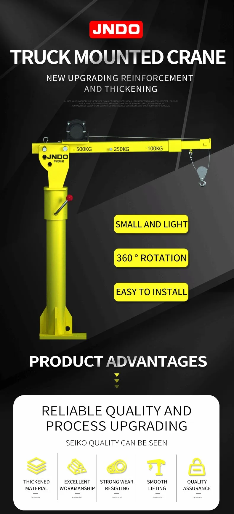 | Feature: | TRUCK CRANE; | Rated Loading Capacity: | single line500kg double line 800kg; |
