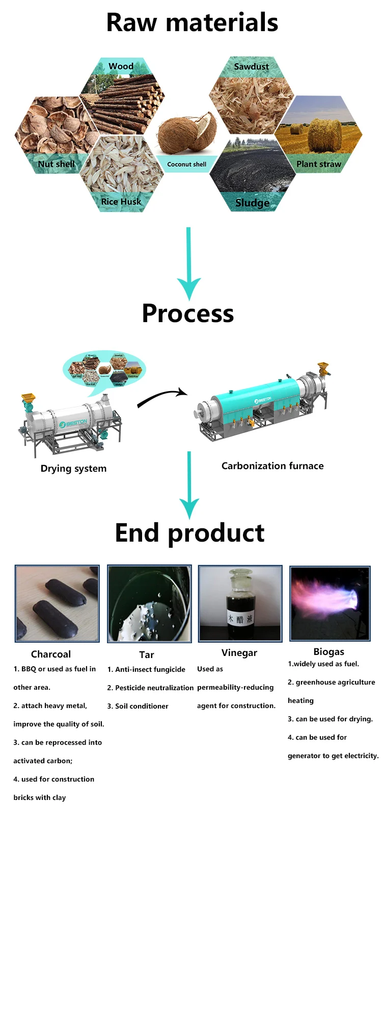 Raw Material | Sawdust,Coconut shell,Wood,Rice husk and Other biomass material/Waste Sludge | |||||||||