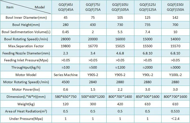 | Name: | GQ105J Printing Ink Purify High Speed Tubular Centrifuge Separator; | Dimension(L*W*H): | 800*700*1400; |