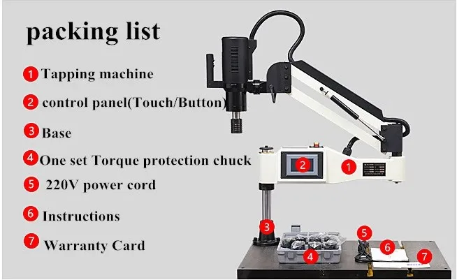| M3-M12 | M3-M12 | 220v | 312r/min | 1000mm | Universal head | ISO/DIN/JIS M3-M12 collet |