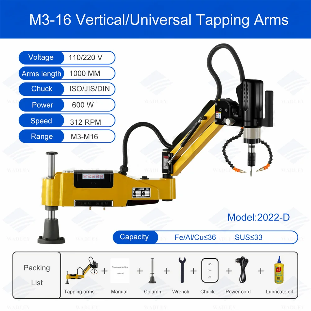 | M3-M16 | M3-M16 | 220v | 312r/min | 1000mm | Universal head | ISO/DIN/JIS M3-M16 collet |