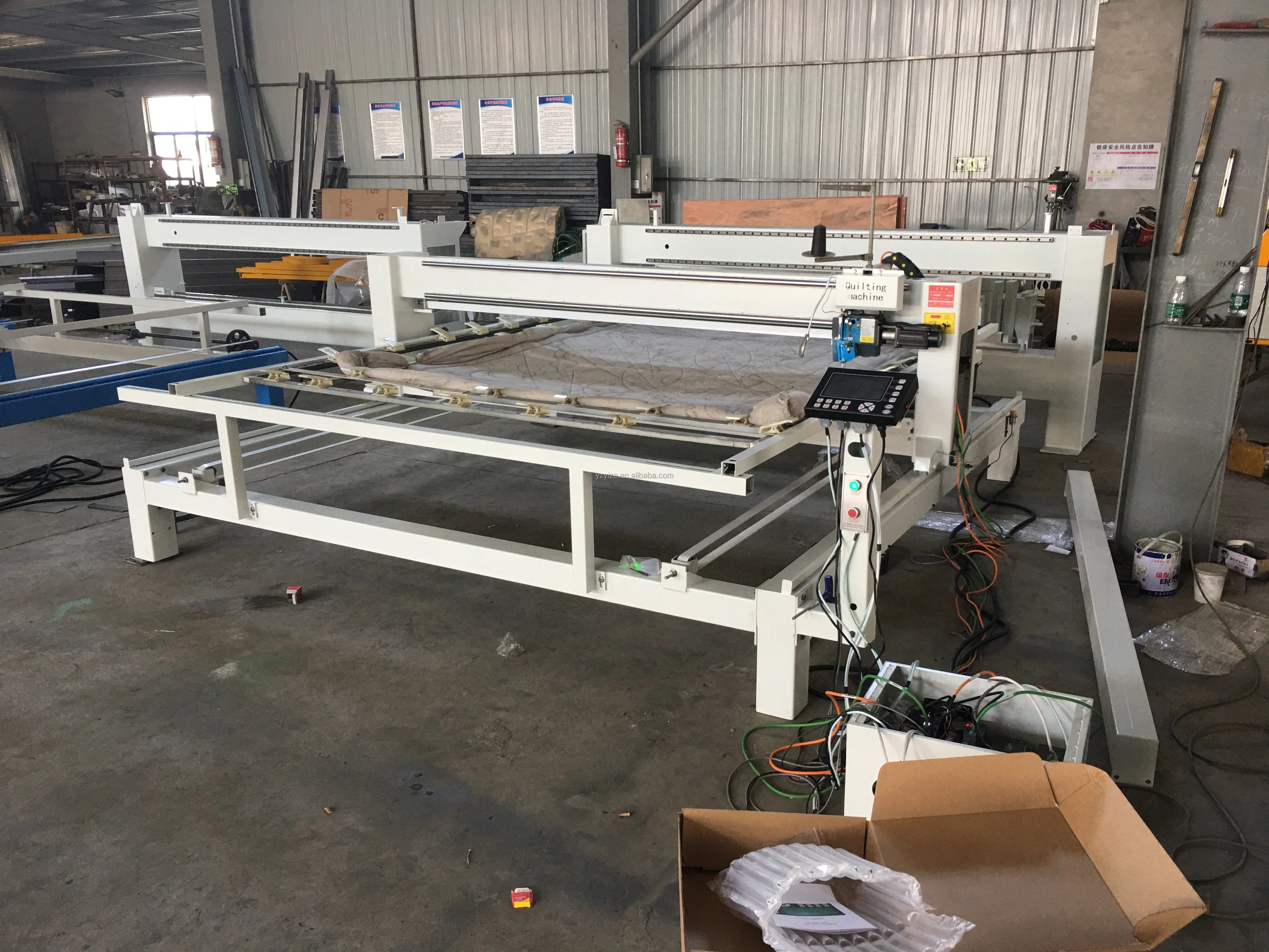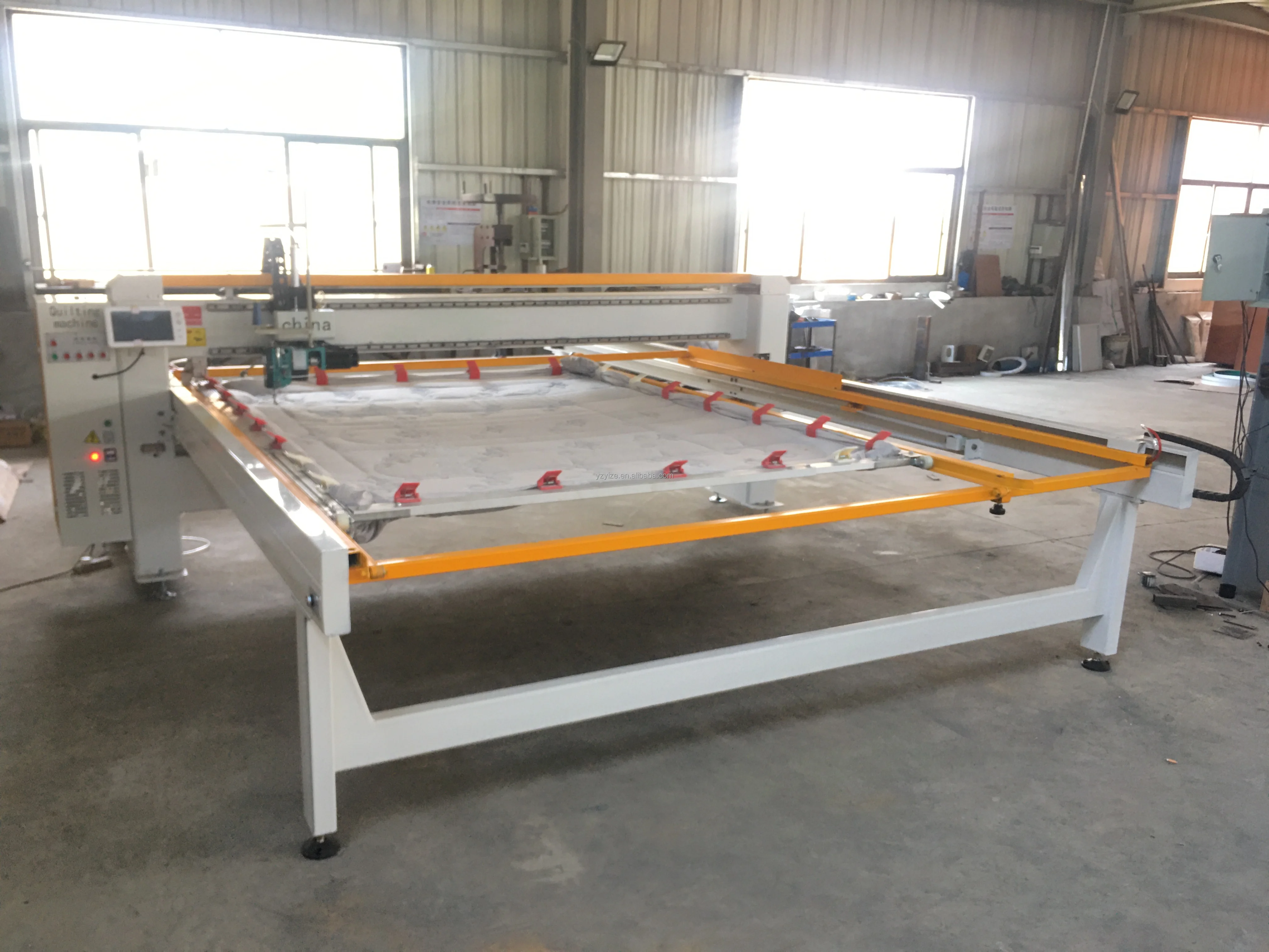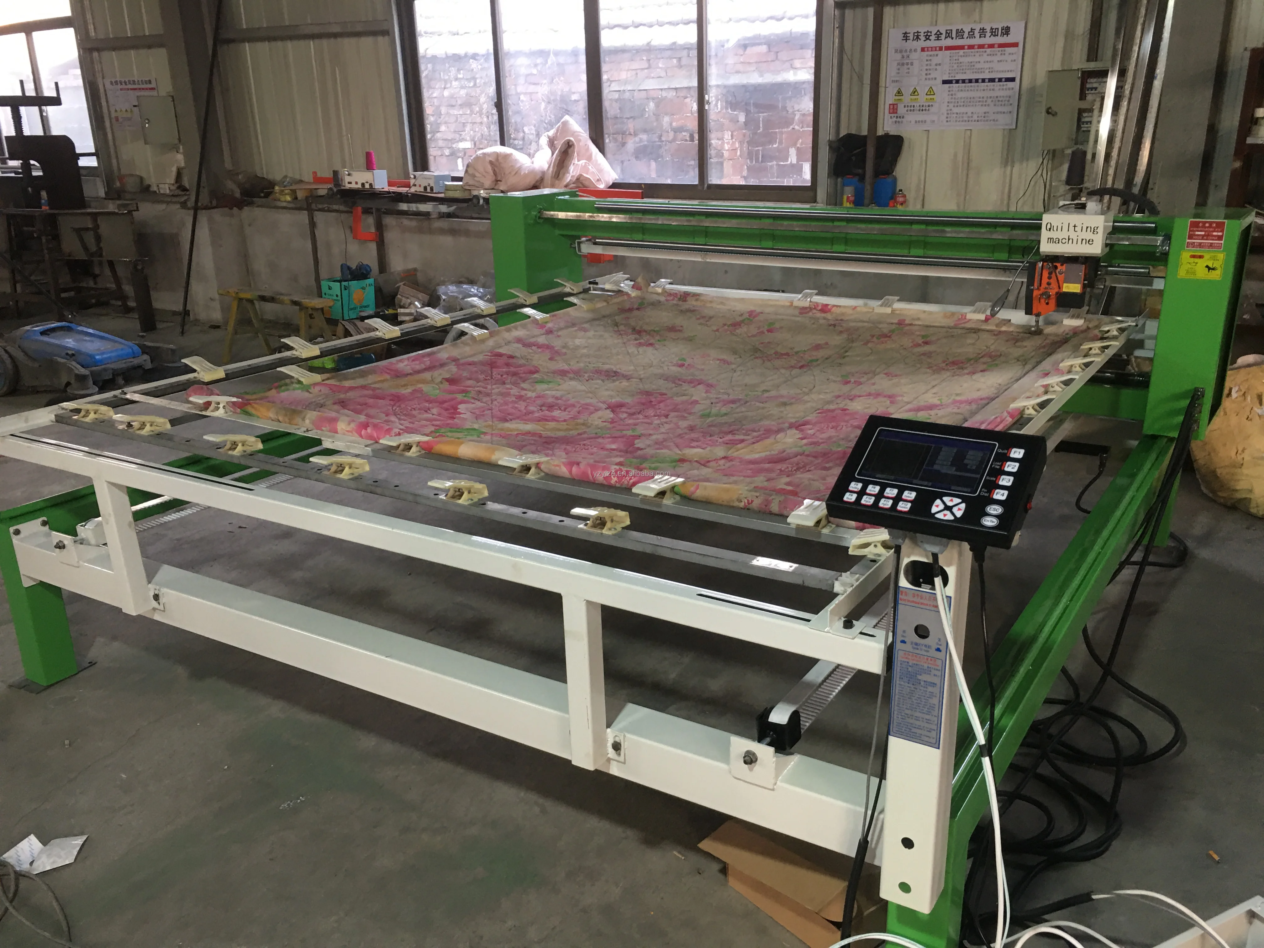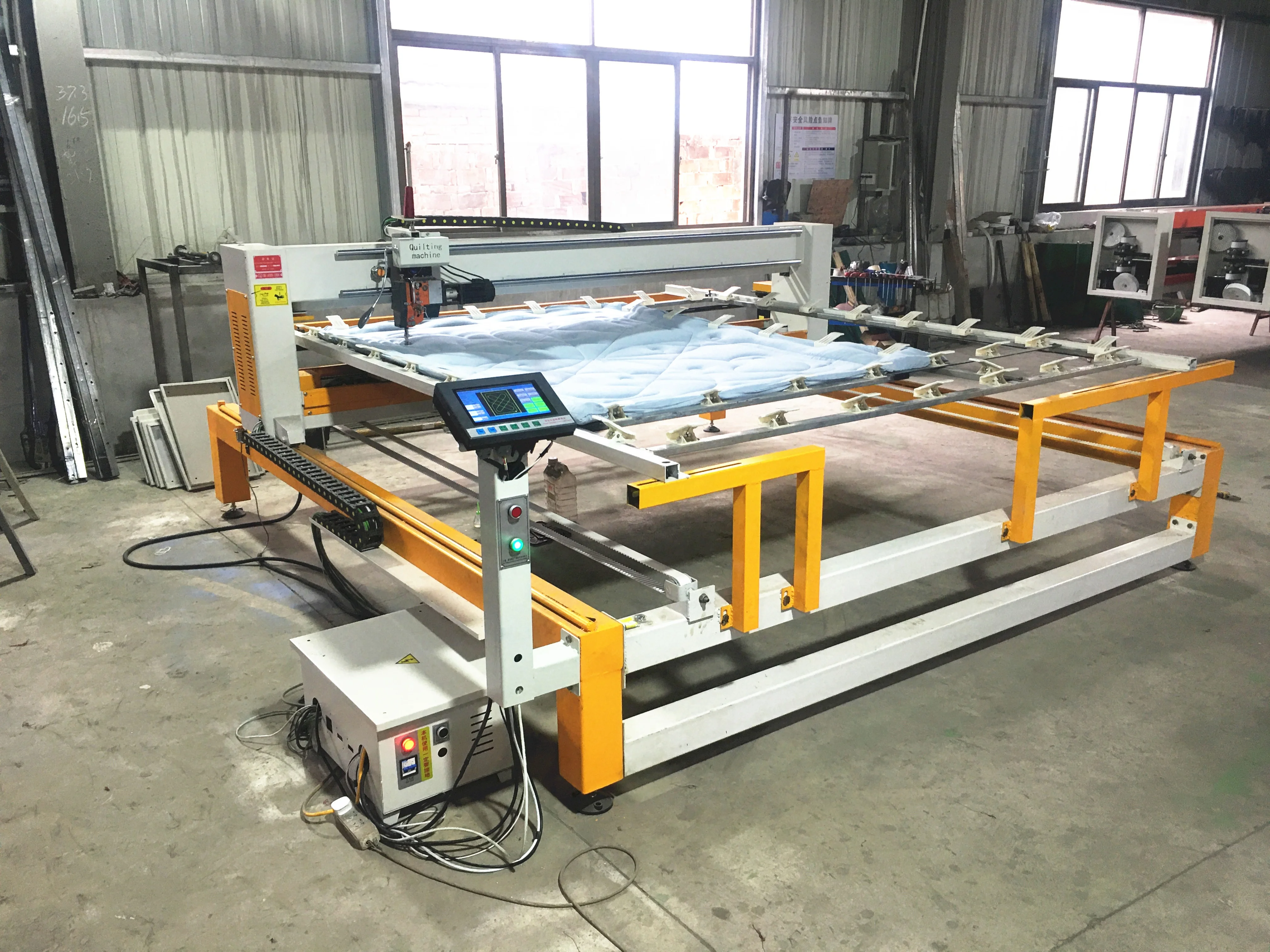 Single Needle Long Arm Quilting Machine is controlled by industrial computer, achieving the most stable and reliable working effects. With super-large capacity electronic hard disk and 3 interfaces for U disk, widely used in almost all kinds of quilts,blankets,sleeping bags, bedspreads, curtains,etc. This machine is very popular with small or large stores and factories.