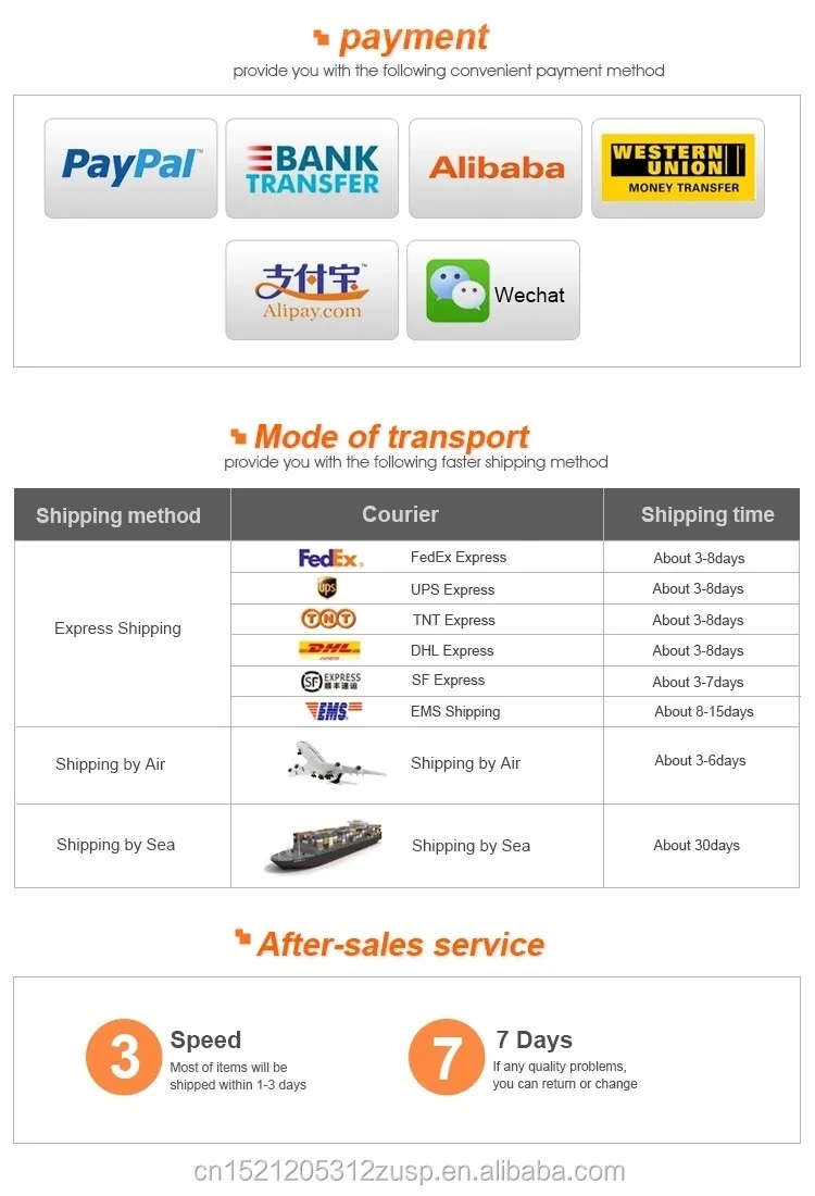 Payment terms: T/T, L/C, Western Union and PayPal , trade assurence