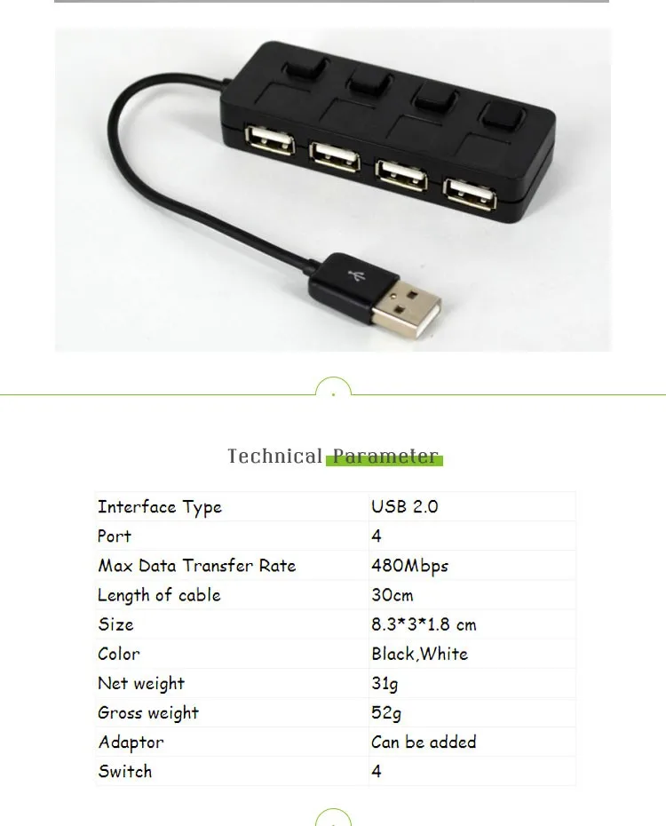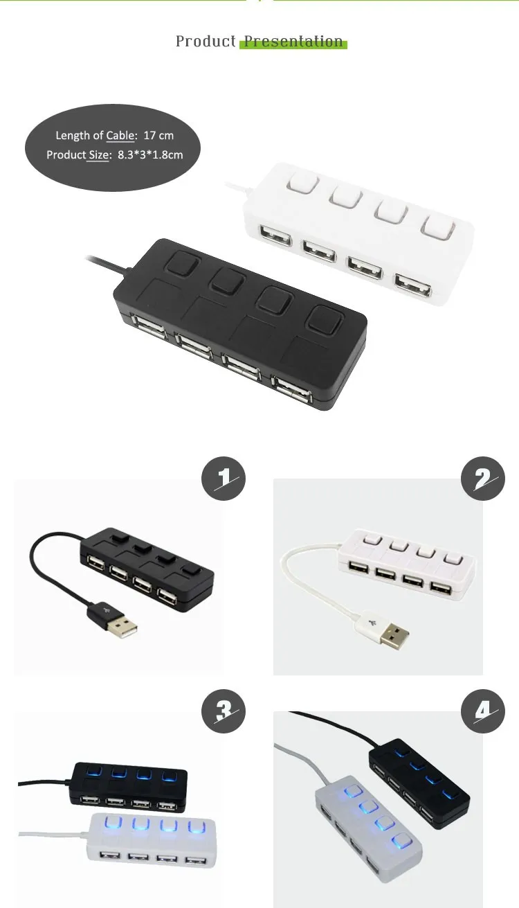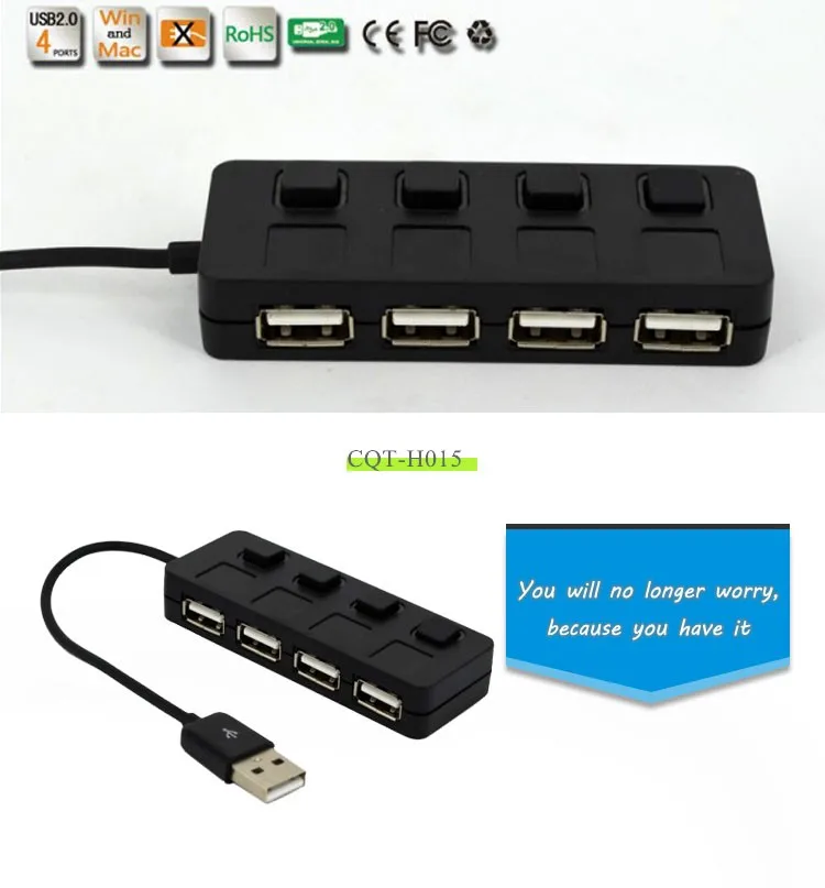 8.3*3*1.8 CM Seperate Switch LED Indicator Cheap 4 Port 2.0 USB Hub