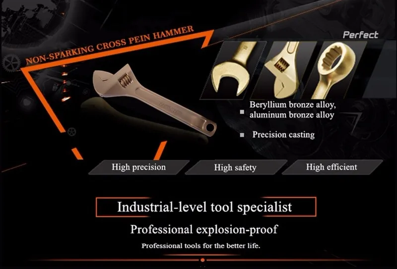 Used for inflammable and explosive places, the opening width can be adjusted, can be used to install the hexagon head or square head bolts, nuts.