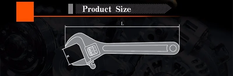 | Application: | for hex or square head bolts and nuts; | Name: | Adjustable wrench; |