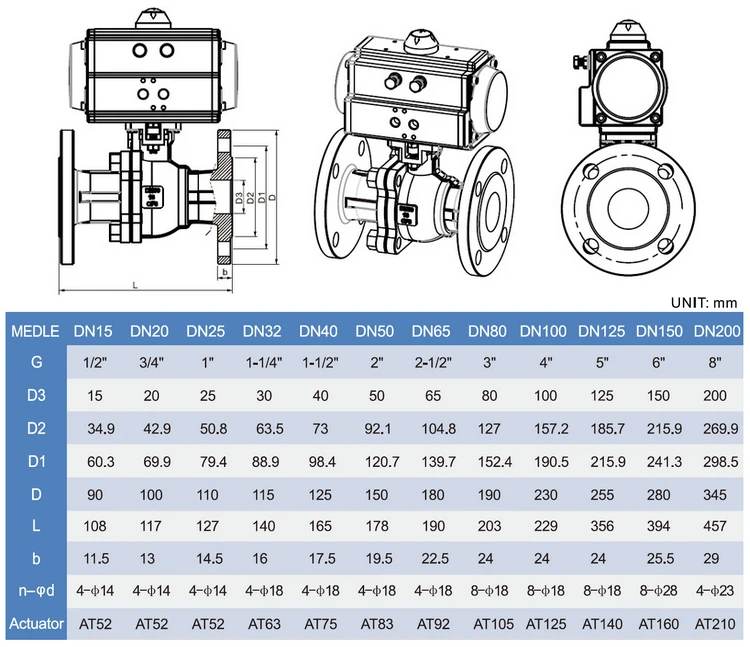 COVNA 2 Way Stainless Steel PTFE Flanged Connection Pneumatic Actuated Ball Valve