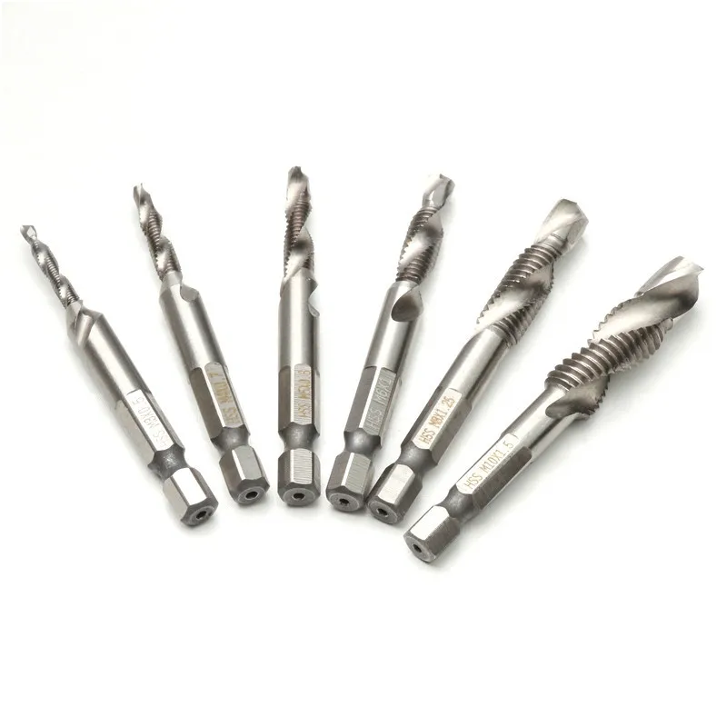 6pc HSS Hex Shank Thread Spiral Screw M3-M10 Combined Machine Tap Drill Bit for Metal Drilling Tapping