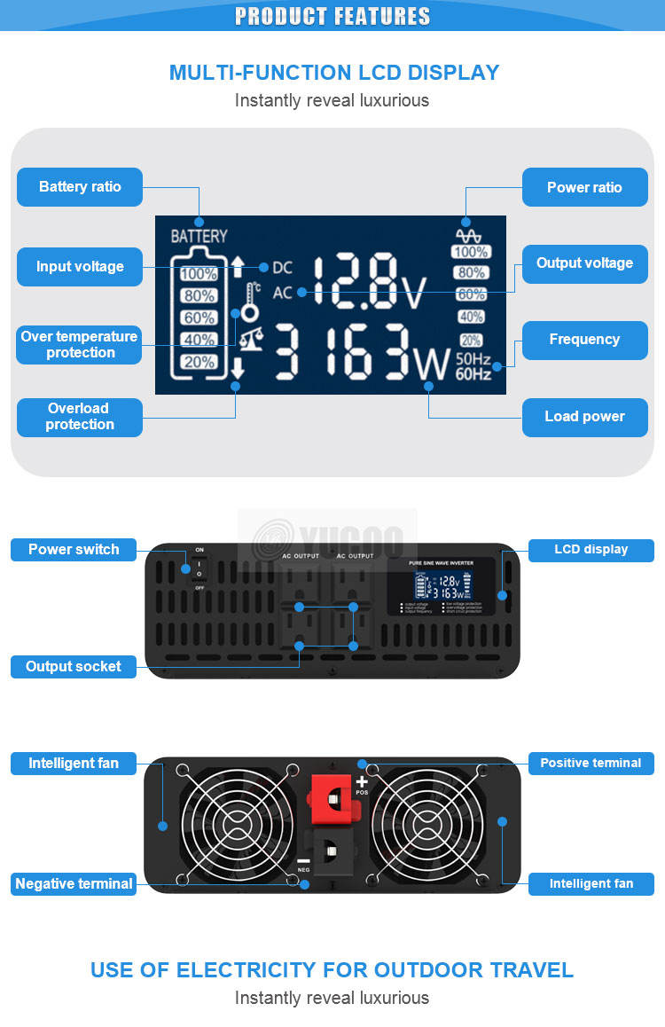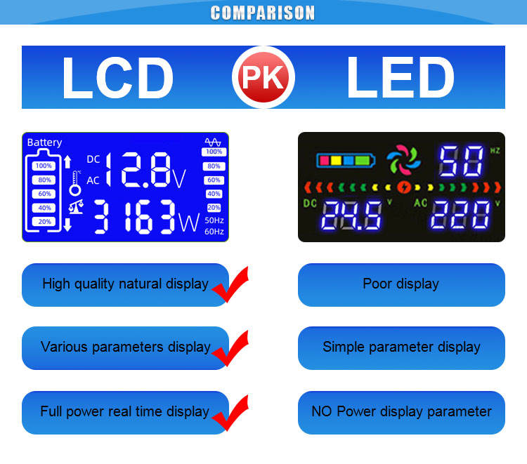 4. The sine wave inverter adopts LCD liquid crystal display mode, and the state is clear at a glance.