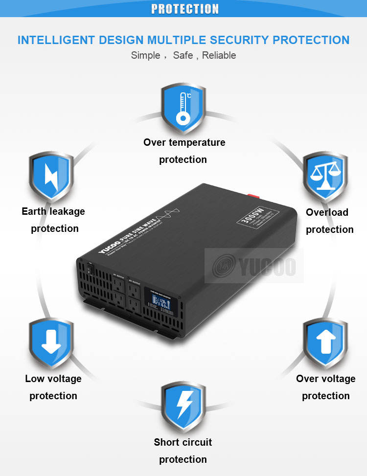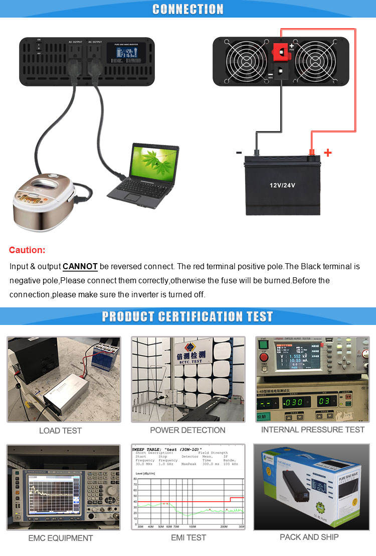 1. This inverter power supply adopts SPWM technology controlled by MCU micro-processing, pure sine wave output, and the waveform is indeed pure. The unique dynamic current loop control technology ensures reliable operation of the inverter.