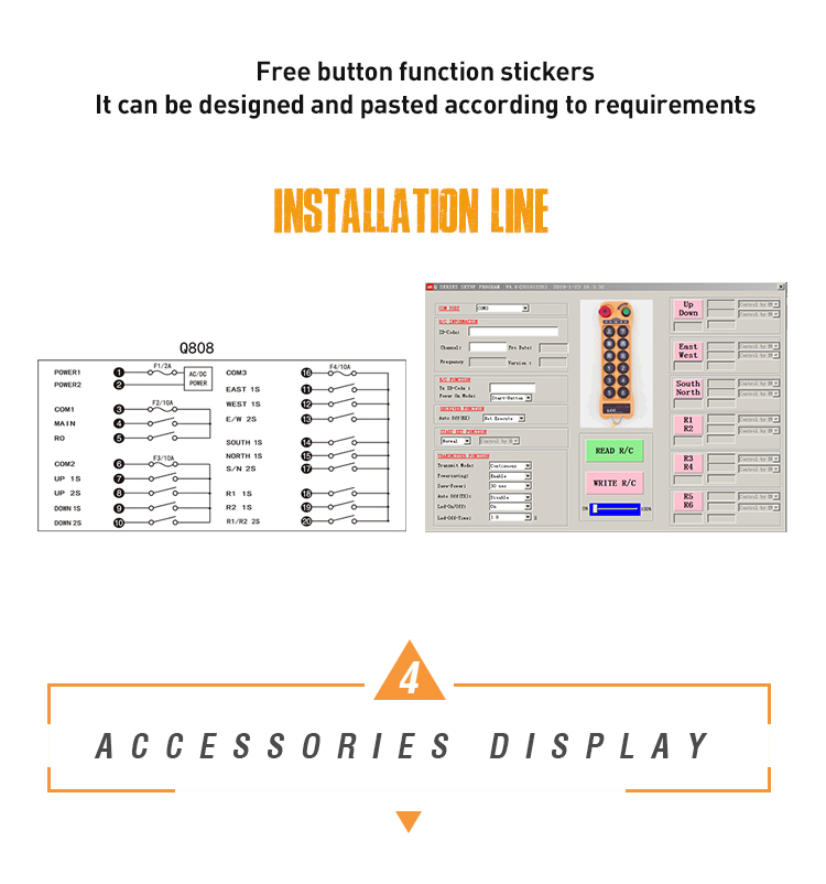| Packaging Detail: | Q808 433Mhz 8 keys double speed industrial crane radio wireless remote control Per product is packed in carton with foam cushioning material to prevent collision during transportation.; | Function: | Waterproof,Auto shut-off; |