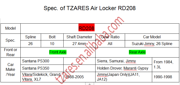 Air lockers for suzuki rd204, rd205, rd206, rd207, rd208, rd209 are available.