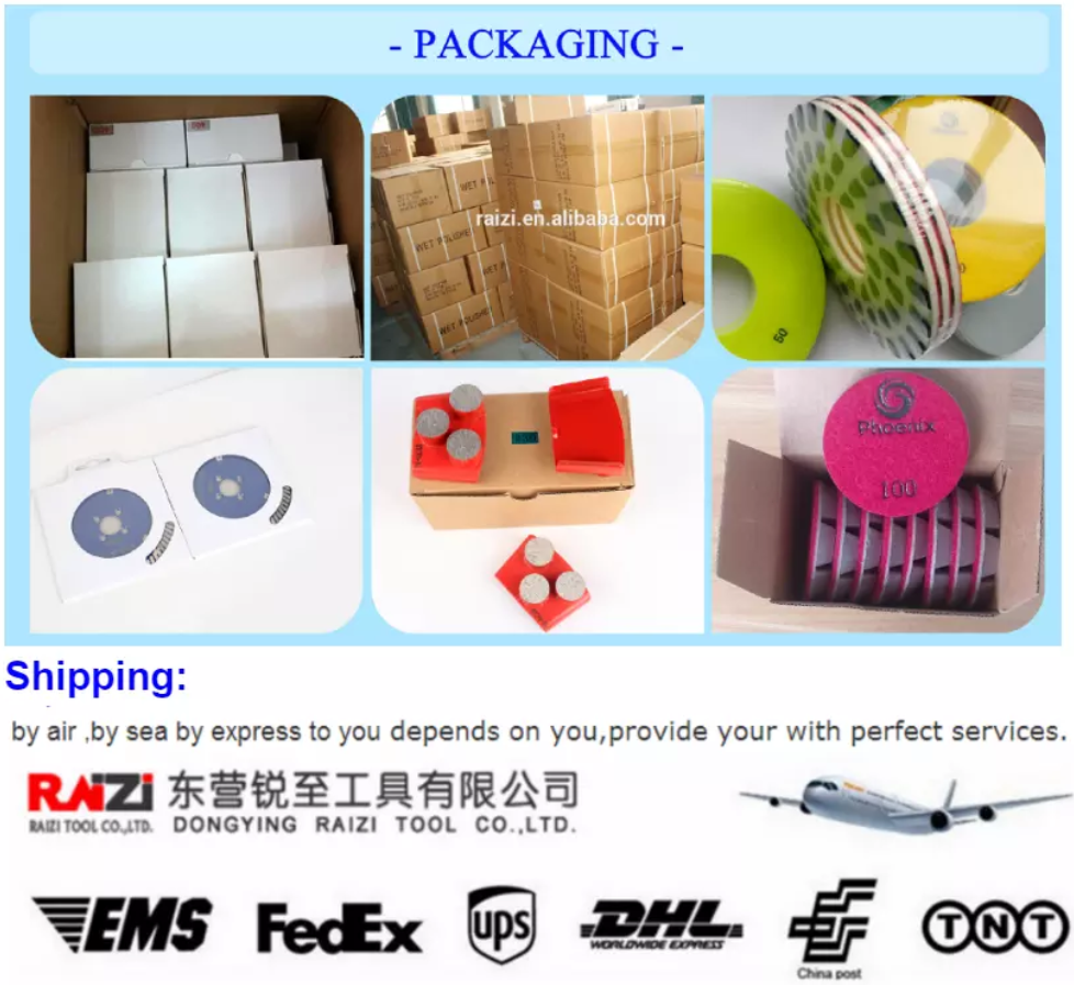 RAIZI Tool Co.,Ltd established in 2006,engaged in manufacturing the most professional polishing and grinding diamond tools for concrete and terrazzo flooring industry in China.Our factory is located in Dongying,Shandong,China.We set up a strict quality control system and testing laboratory site to study and test the tools before they come to the market.RAIZI brings its know-how and proprietary technology to the concrete floor gringding industry.