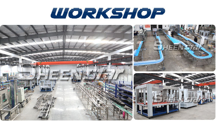 Zhangjiagang Sheenstar Technology Co., Ltd. is a professional manufacturer of beverage packaging solutions. We supply water treatment, water filling production line, carbonated drink making filling production line, juice making filling production line, 5 gallon filling production line, labeling machine and shrink packing machine. With our machines, bottles can be plastic bottle, glass bottle barrel and cans. In other words, customized machines can be produce according to client's requirements.