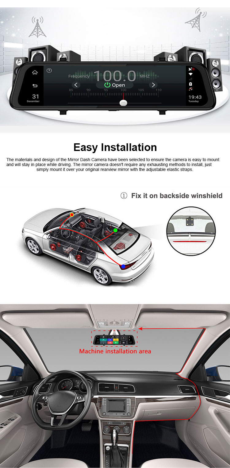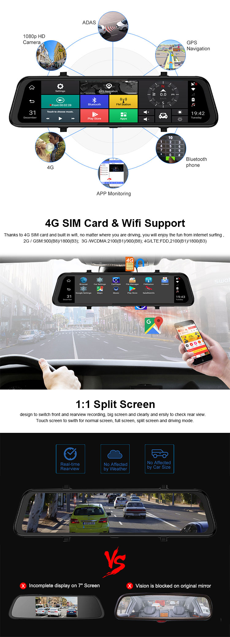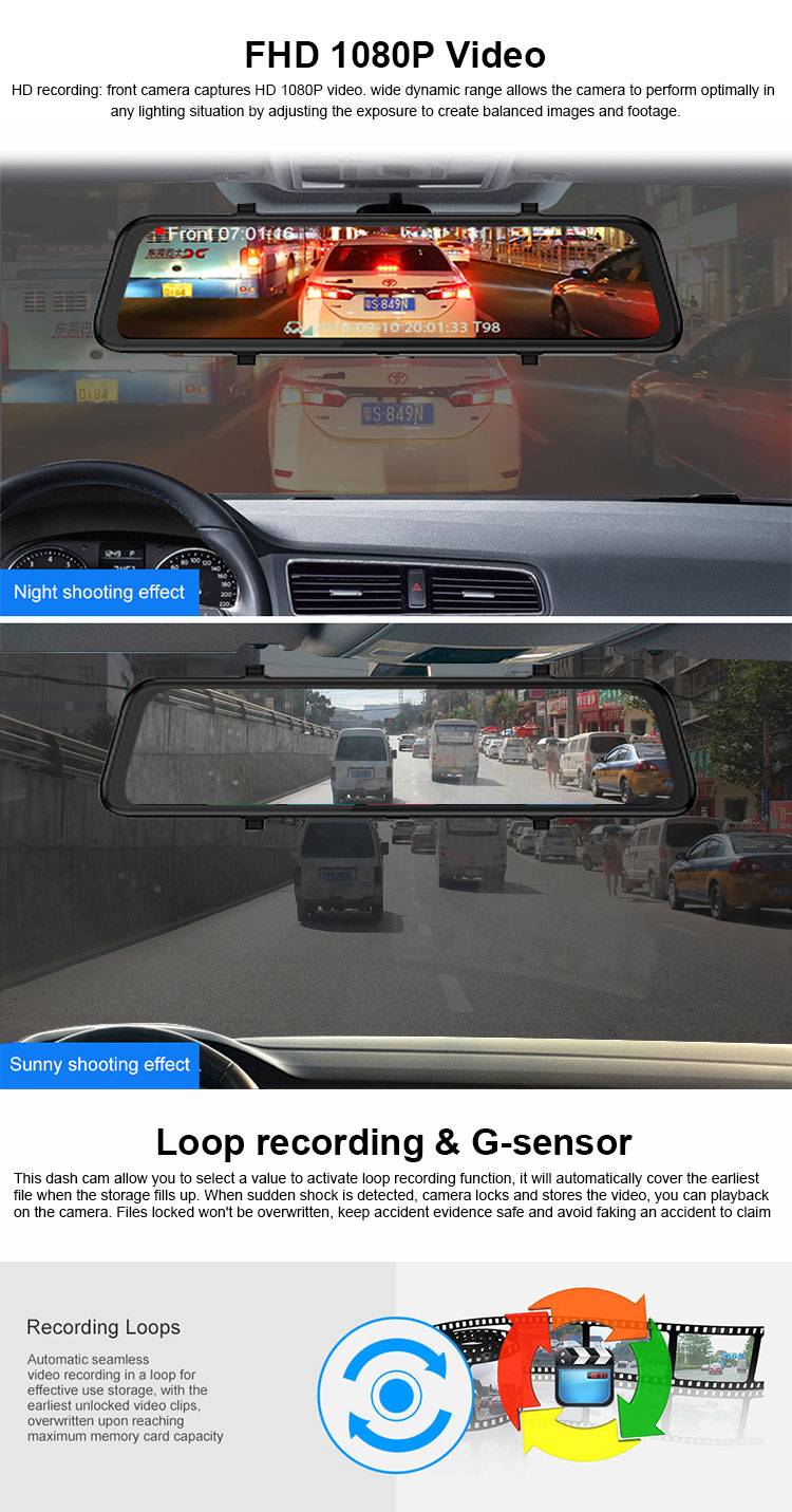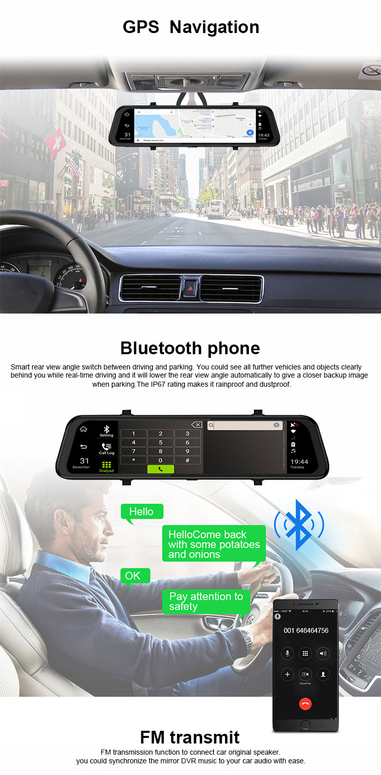 | Function: | loop recording, G-SENSOR, reversing camera, FM,Waterproof,NIGHT VIEW,G-Sensor,Split Screen,Build-in GPS,Build-in GSM,Parking Line,ADAS; | Video Resolution: | 1920*1080; |
