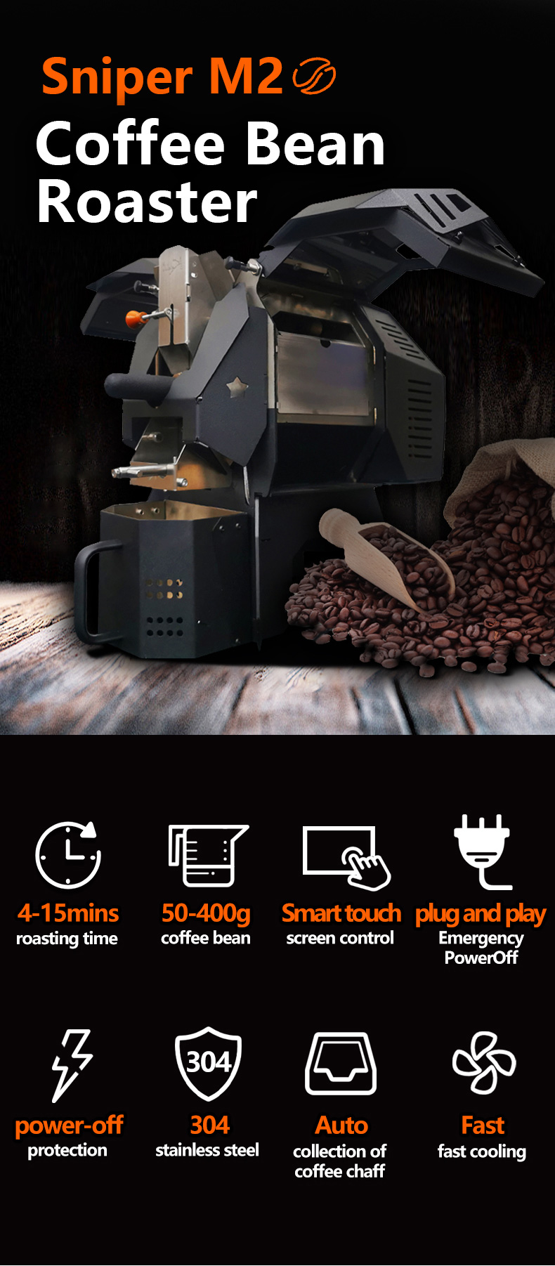 ★Roasting Capacity:50g-300g Max 400g