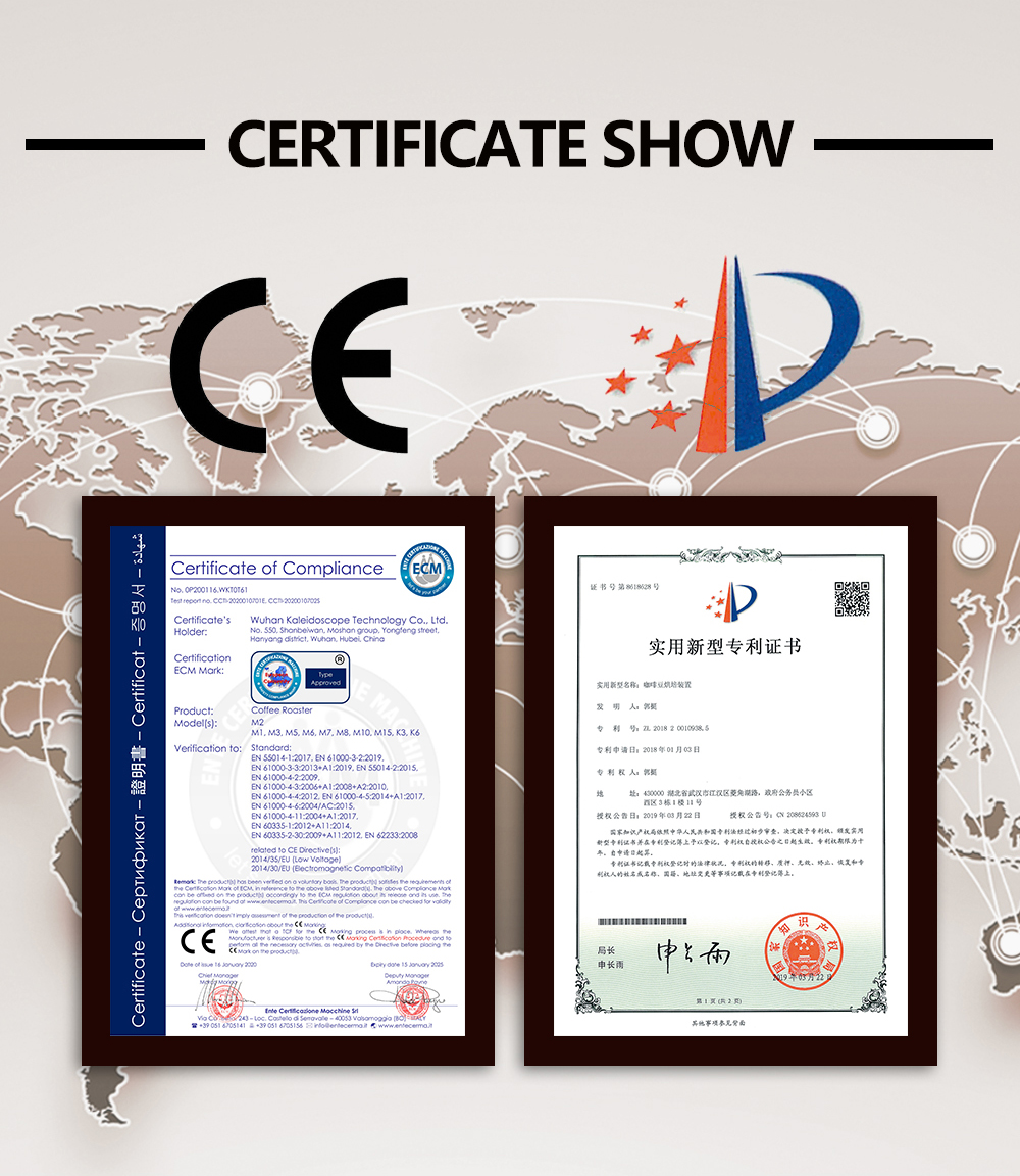 -- We have professional designer team and experienced engineers to strictly guarantee the production. Meanwhile our coffee roaster is CE certified.