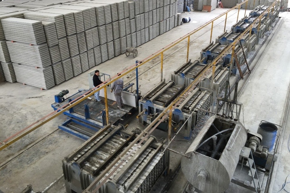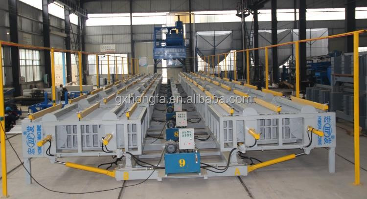● Horizontal molding wall panel production line to solve problems like aluminum alloy plate loading of other models, not accurate size slurry per-fusion pouring, core material not full, need to manually using the steel core and vibration compaction, demoulding time problem.