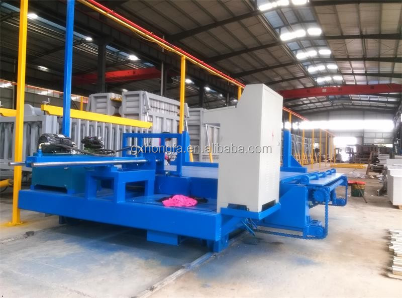 This mobile de-moulding turnover platform adopts hydraulic de-moulding, which leads to fast and convenient de-moulding, and decrease the broken rate. It is convenient for finish products pallet stacking.