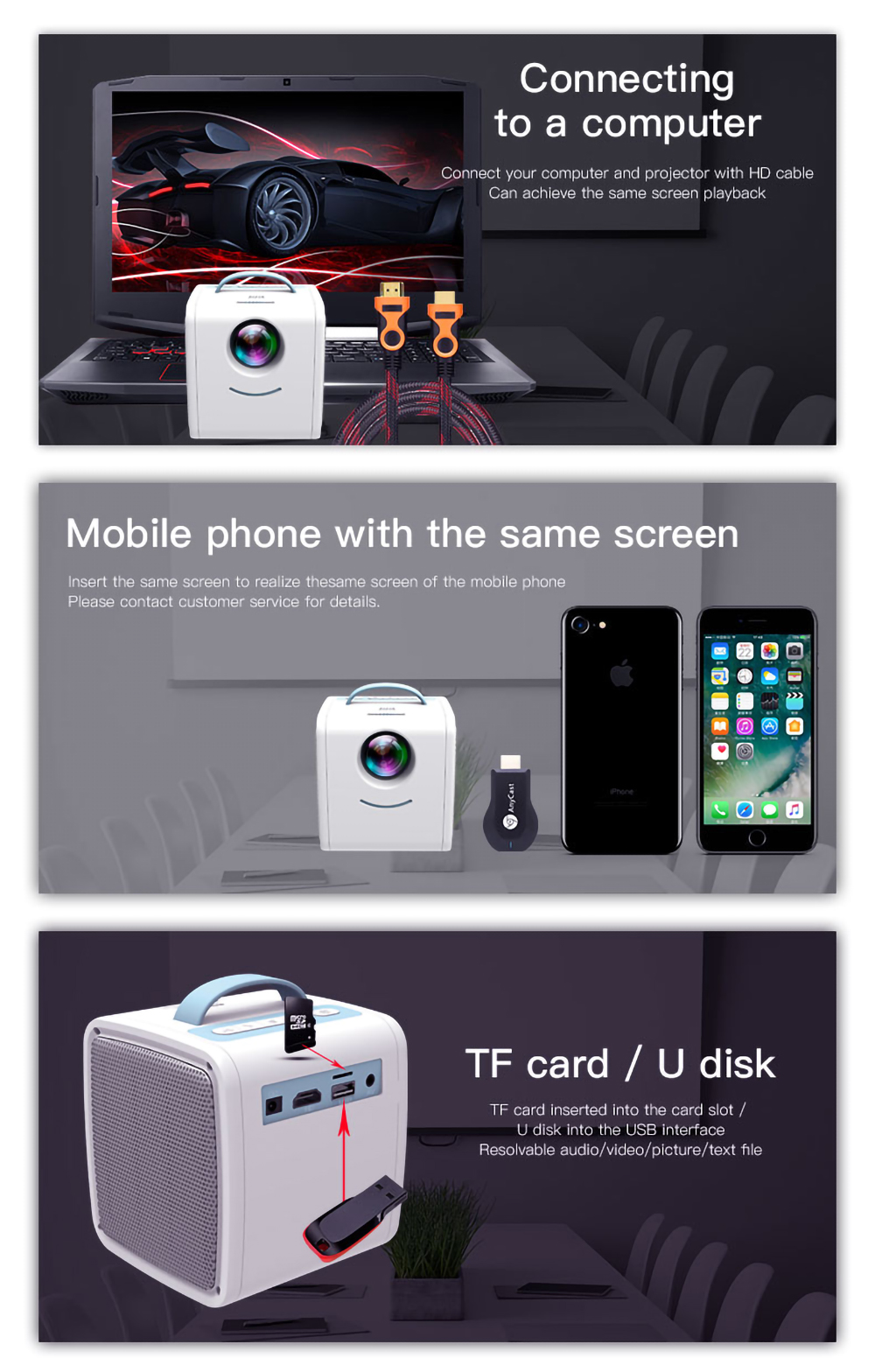 | Single package size: | 24X11X25 cm; | Keyword: | LED projector Mini outdoor portable LCD projector; |