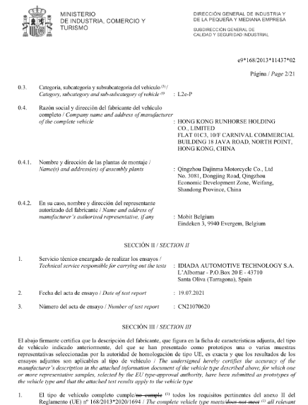 18 | Wheel Suspension | Tyre | Front 120/70-R12 Rear135/70-R12 | |||||
