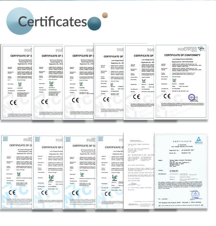 A: We have approved Chinese national standard, European IEC standard, American SAE standard and Japanese CHAdeMo standard etc certification.