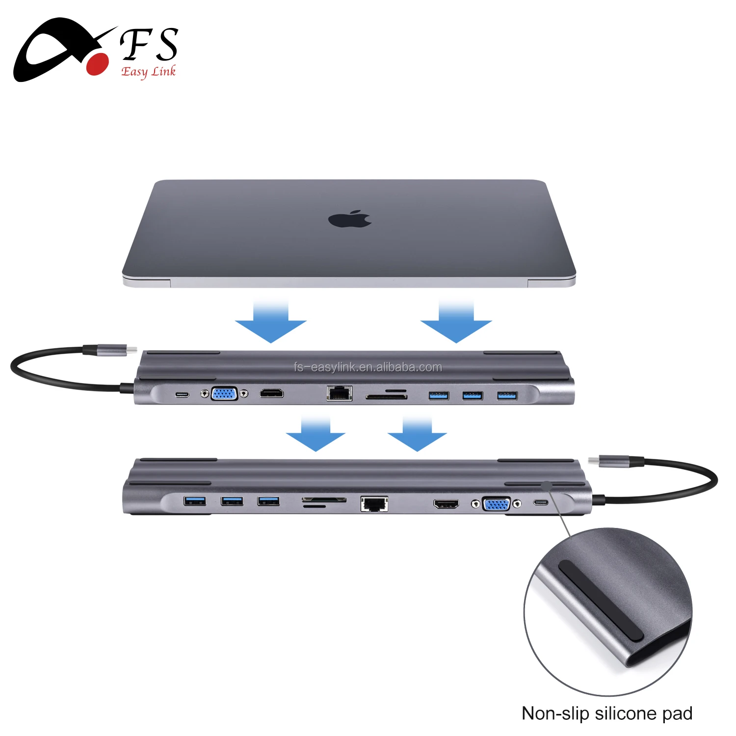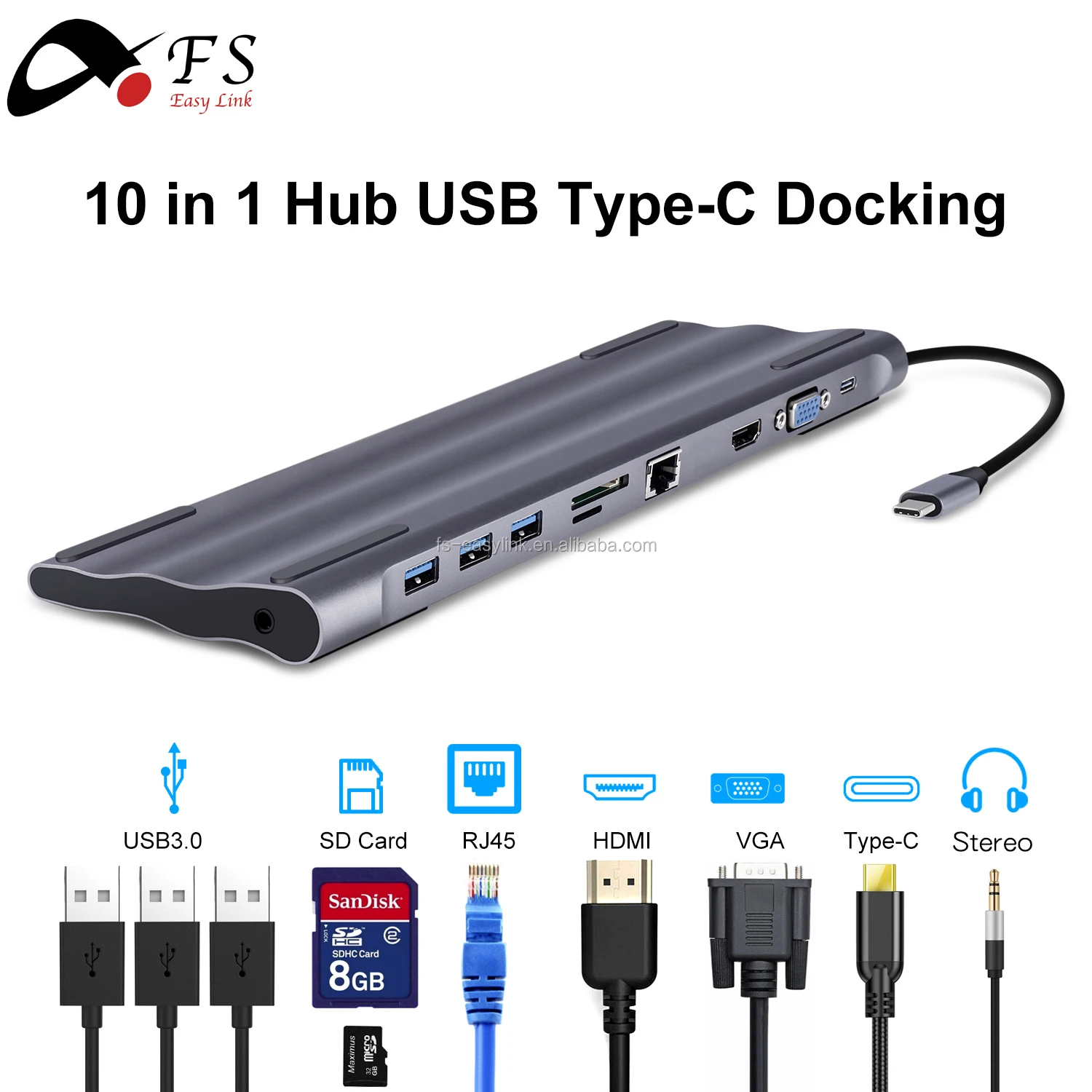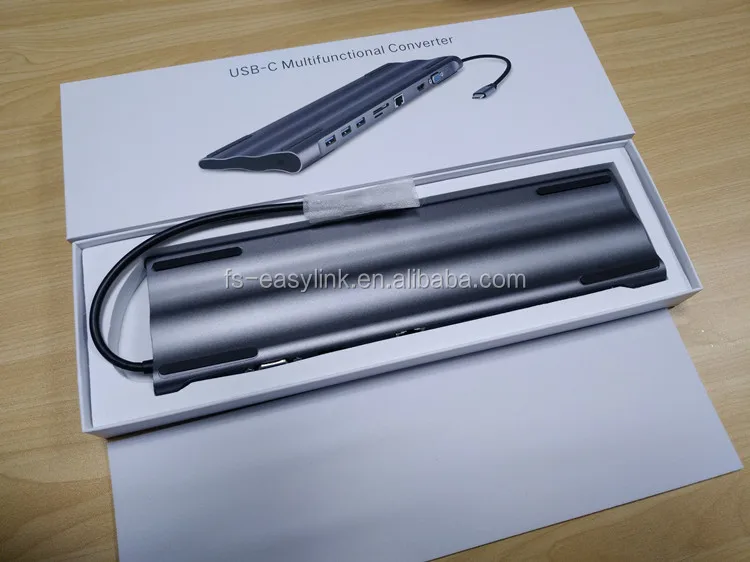 | Product Feature: | Aluminum Alloy; | Function: | USB type C to HD-MI+VGA+USB 3.0+TF+RJ45+audio+Type C Docking; |