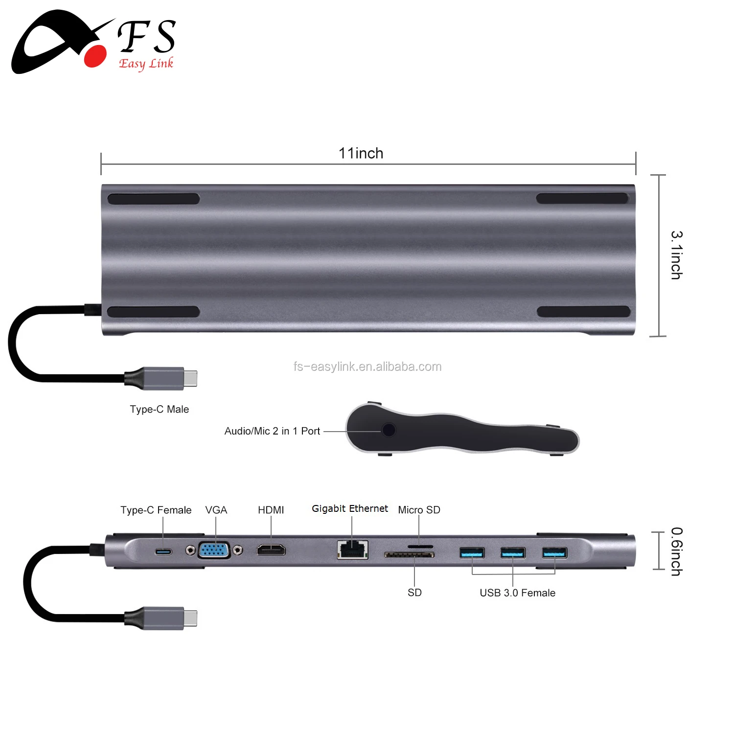 | Product Name | USB type C to HD-MI+VGA+3*USB 3.0+SD card slot+TF+RJ45+audio+Type C Female Docking |