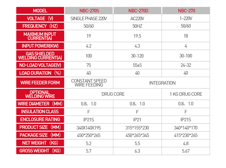 | Model o. | NBC-270D | NBC-270 |