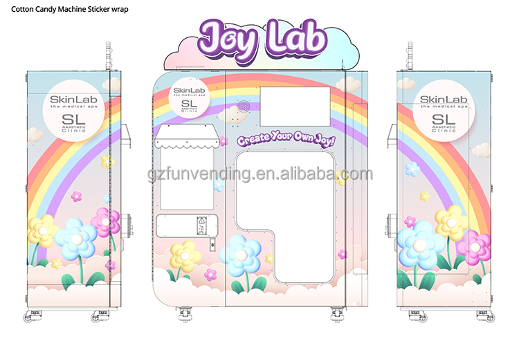 | Material: | Metal+acrylic+plastic; | Name: | Colorful clouds roll Cotton candy vending machine; |