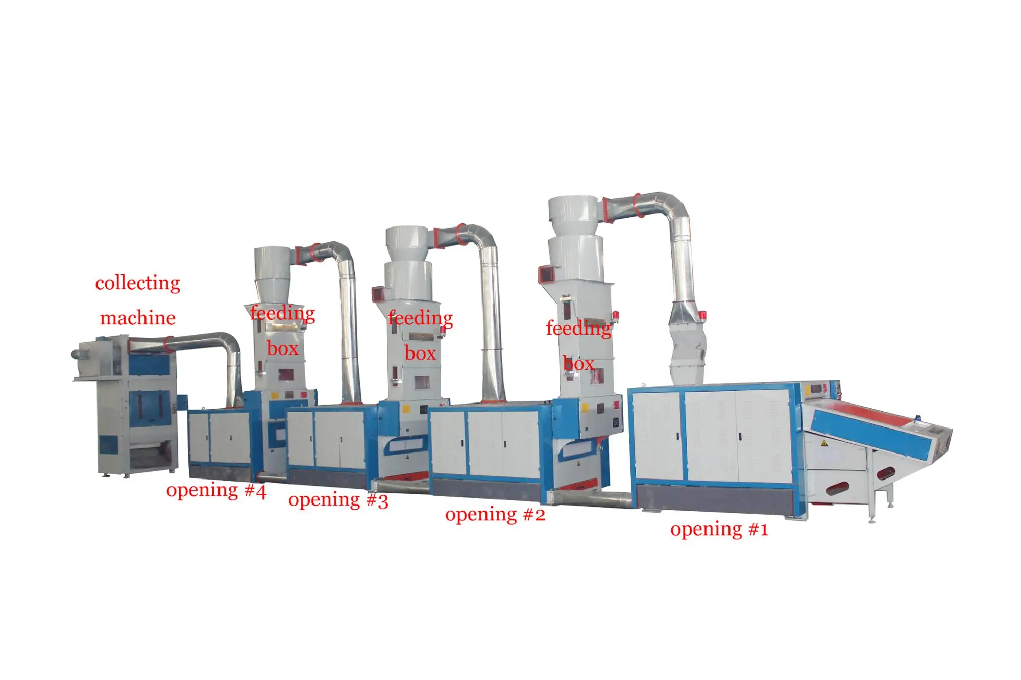 This machine makes use of the centrifugal force generated by high speed rotation of take-in roller clean out impurities from raw material, loosen fibers, and then press the fiber into big flakes.