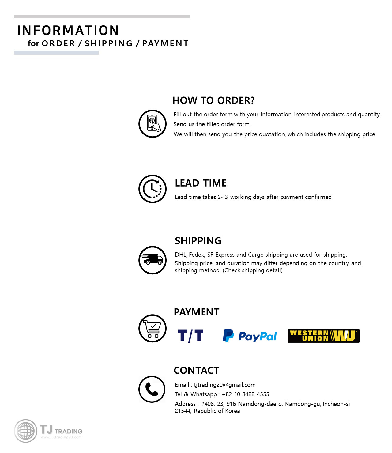 Payment Terms | T/T, Western Union, Paypal |