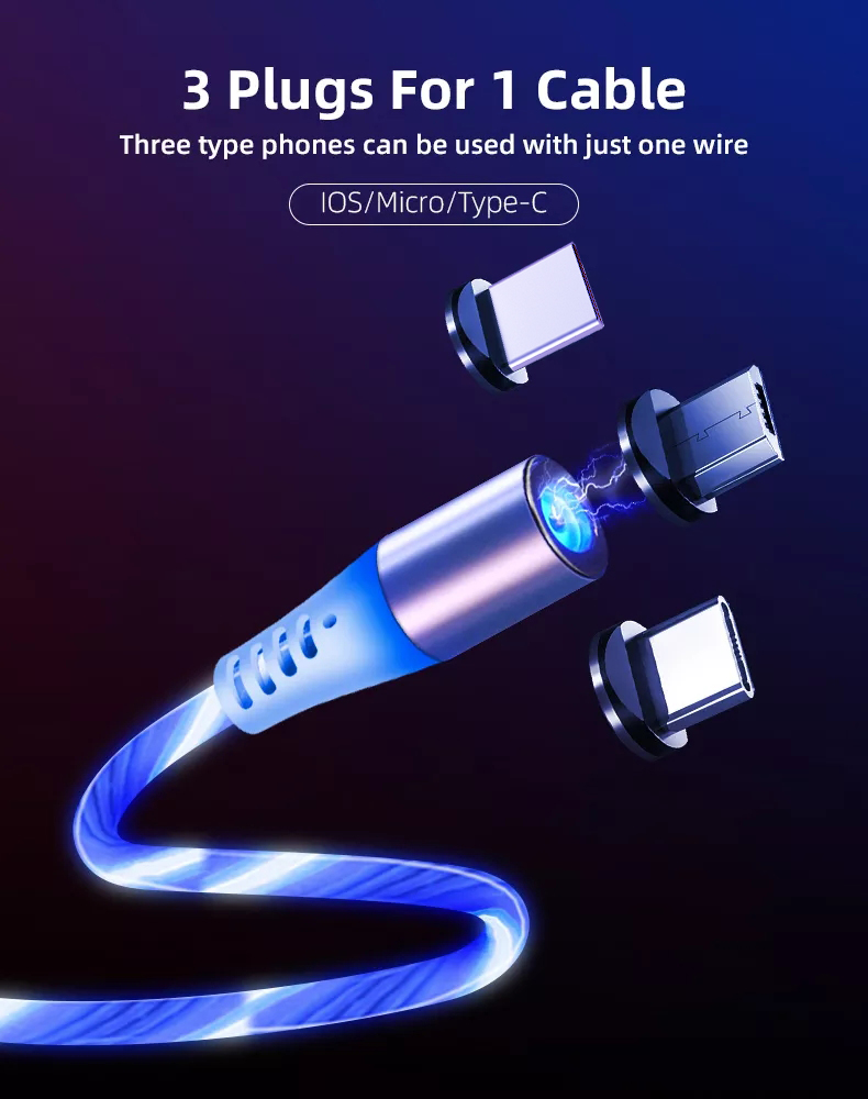 Rotating magnetic cable LED flowing light cable Luminous fashion cool cable 3 in 1